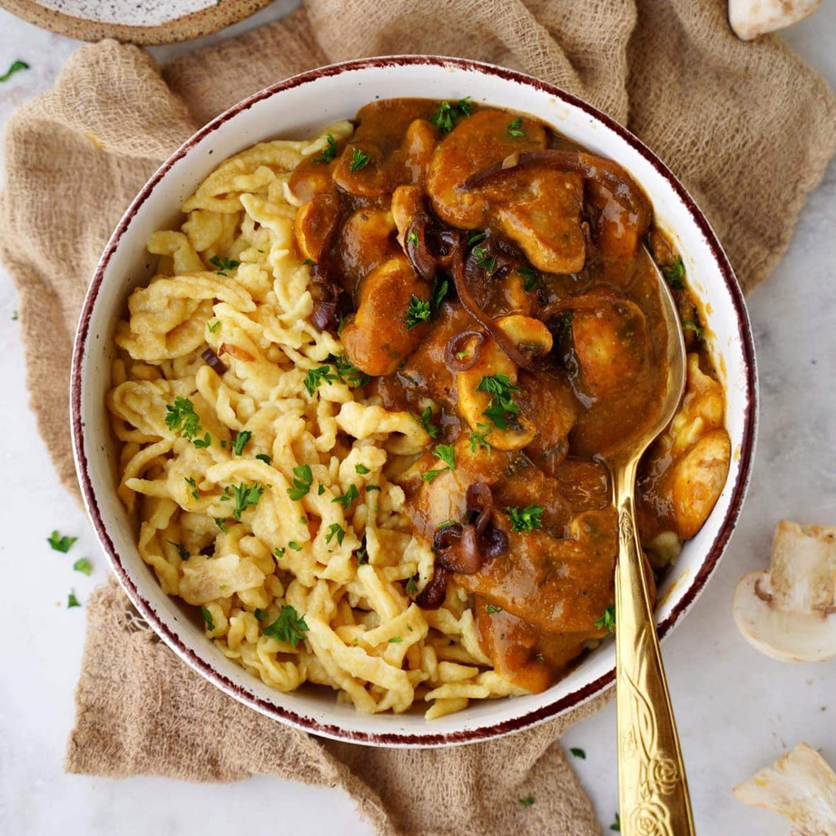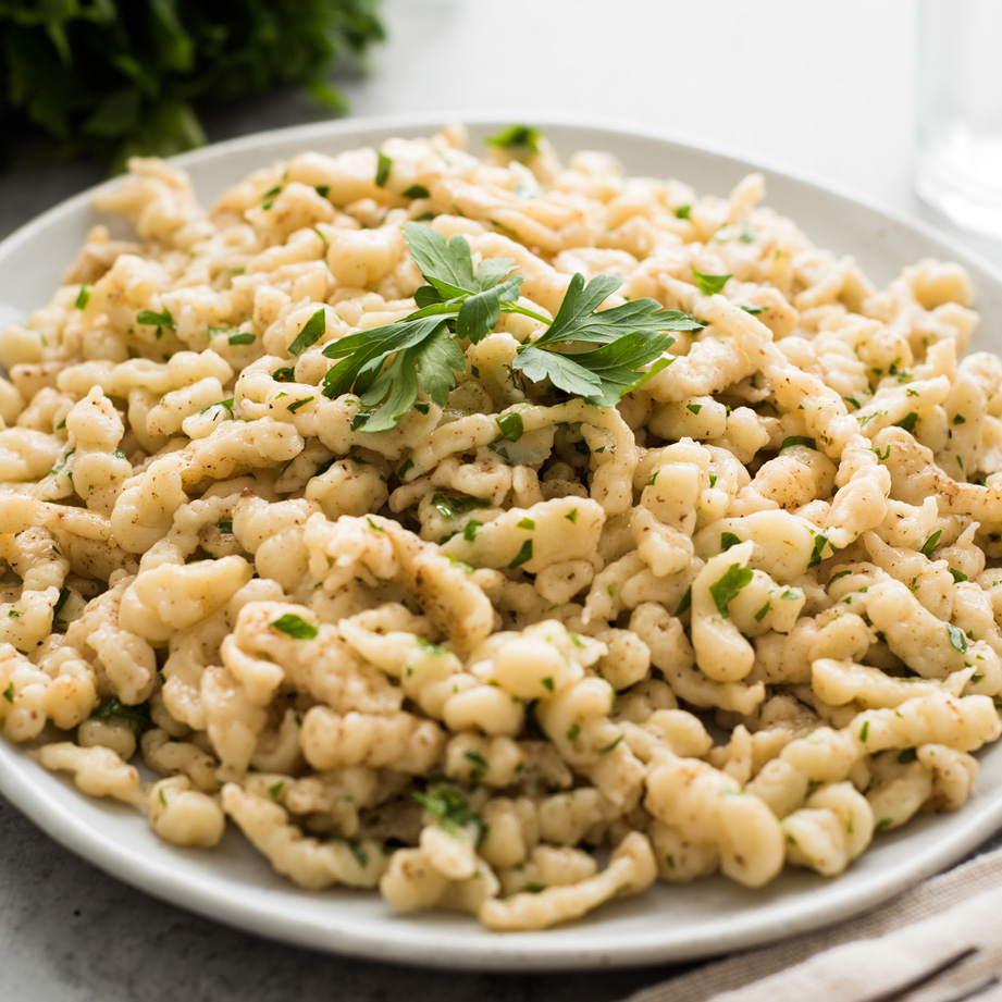 Our Bavarian-style spaetzle noodles are a staple of Bavarian/Southwest German cuisine and shorter and thicker than Swabian Farmer Spätzle.